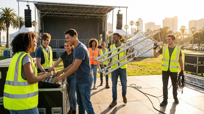 Physical work installing and dismantling marquees for an event on Hyde Street, Dunedin on April 18th.