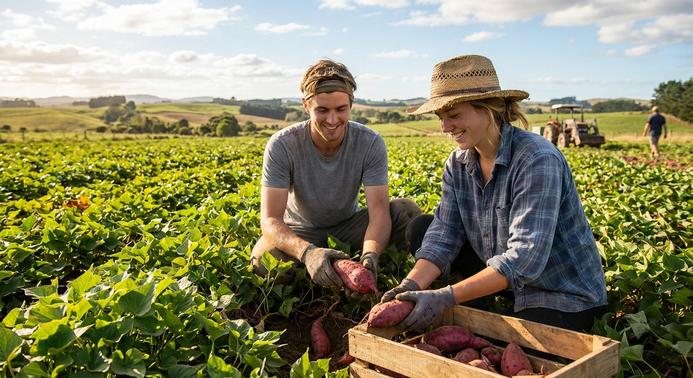 Join our farm team for kumara harvesting in sunny Northland, working outdoors with a friendly team. Great opportunity for working holiday visa holders.