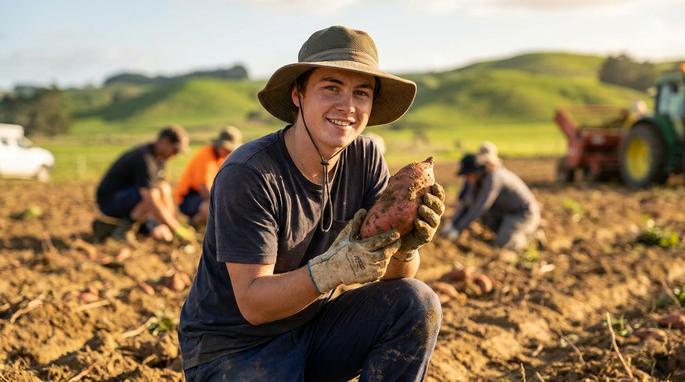 - Kumara Harvesting starting immediately. Harvest season will last until mid May. If you wish to work for a shorter term we would be happy to have you